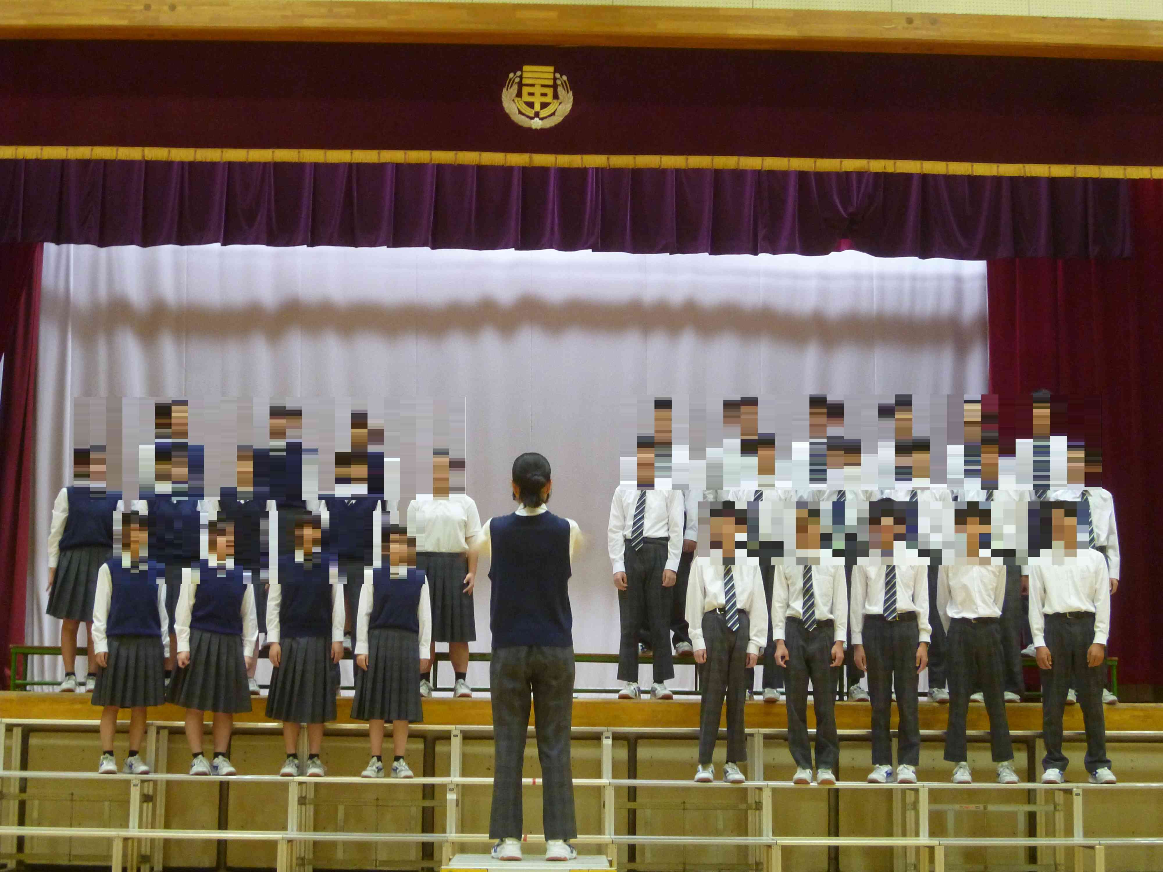 本日、2学年の合唱発表リハーサルがありました。 初めは緊張した様子でしたが、学級合唱では本番に向けて弾みがつくような歌声でした。 2度目の文化祭。 「三砂中の背骨」に相応しい発表になるよう期待がかかります。 2年生の合唱発表は以下の通りを予定しています。 (実際の発表順に掲載しています) ☆学年合唱 「時の旅人」作詞:深田じゅんこ 作曲:橋本祥路 ☆学級合唱 【2組】「あなたへ―旅立ちに寄せるメッセージ―」作詞・作曲:筒井雅子 【4組】「旅立ちの時~Asian Dream Song~」作詞:ドリアン助川 作曲:久石譲 【1組】「心の瞳」作詞:荒木とよひさ 作曲:三木たかし 【3組】「輝くために」作詞・作曲:若松歓 ※当日の参観について 午前の部(合唱発表)の参観は、一家庭につき2名までとさせていただいております。 午後の部(各団体文化発表)の参観は、一家庭につき4名までとさせていただいております。 詳細につきましては、各家庭に配布した「文化祭(舞台の部)のご案内」をご参照ください。 混雑緩和と円滑な行事の進行のため、ご理解ご協力の程よろしくお願いいたします。【添付ファイル】