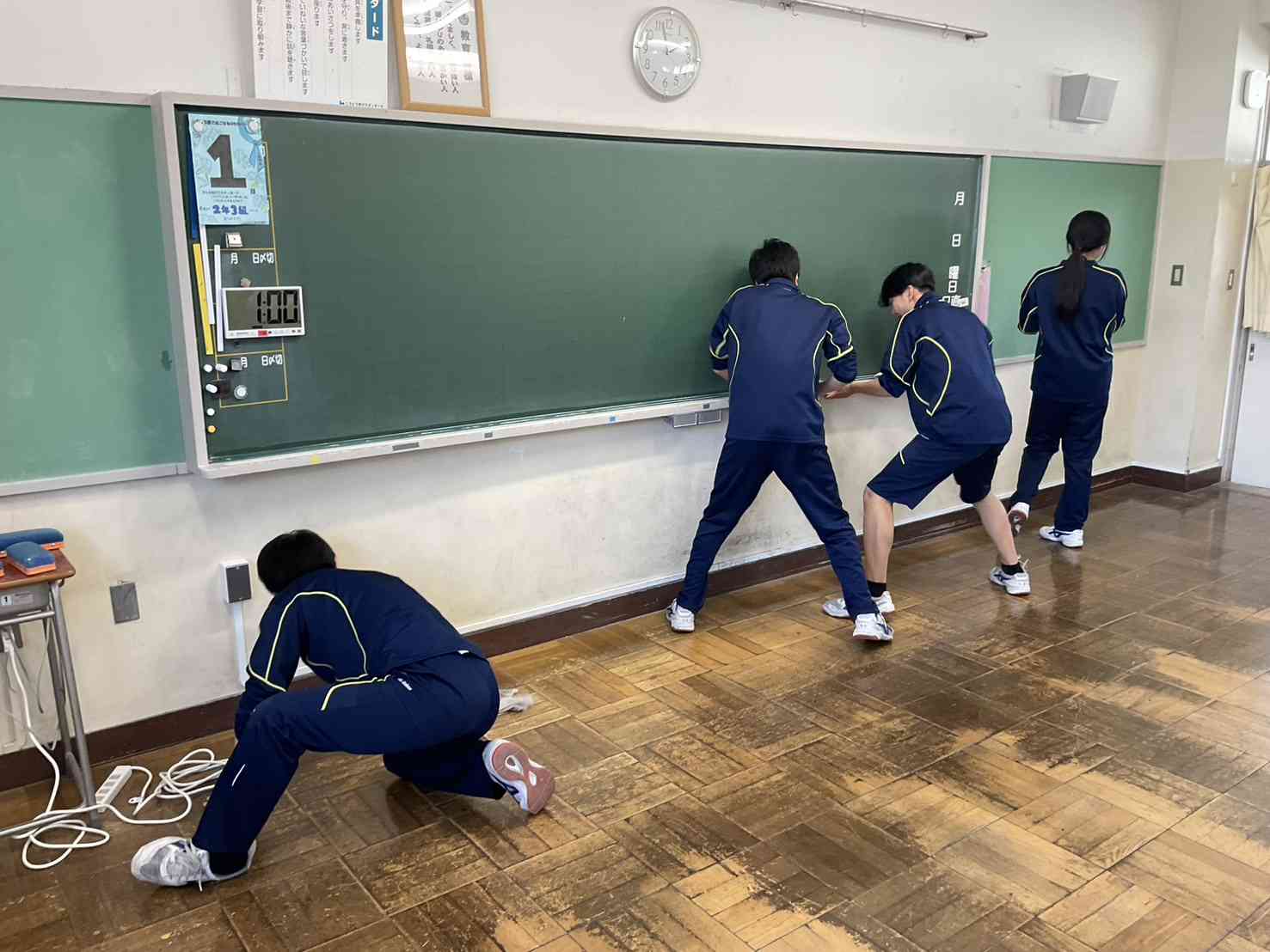 24日(火)、全校で大掃除を実施しました。 年度の締めくくり。 これまで学んできた教室や校舎をすみずみまできれいにします。 写真は2年生のとある教室です。 今年度は1年生が新たに5クラスに学級増となった関係で、2年生は例年と異なり、入学して以来2年連続で東校舎を学年棟として使用してきました。 中には2年間同じ教室を使用していた生徒もおり、それまでの思いもこめて掃除をしていました。 4月からいよいよ3年生。 三砂中の顔として活躍していけるようこれからも頑張りましょう!【添付ファイル】